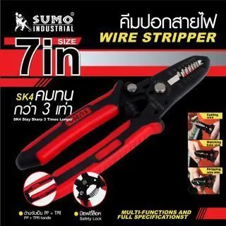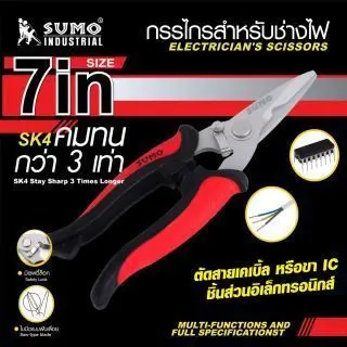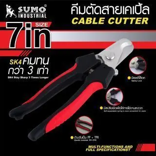 • คีมย้ำหางปลา 9 นิ้ว รุ่น CP-91M SUMO สามารถใช้ย้ำหางปลาได้หลายขนาดตั้งแต่ขนาด 1.5mm², 2.5mm² และ 6mm² และสามารถตัดสายไฟได้ตั้งแต่ขนาด M2.6, M3, M3.5, M4, M5