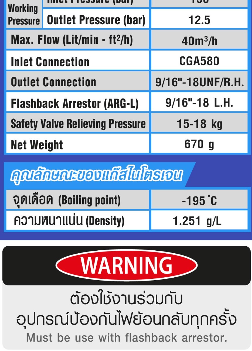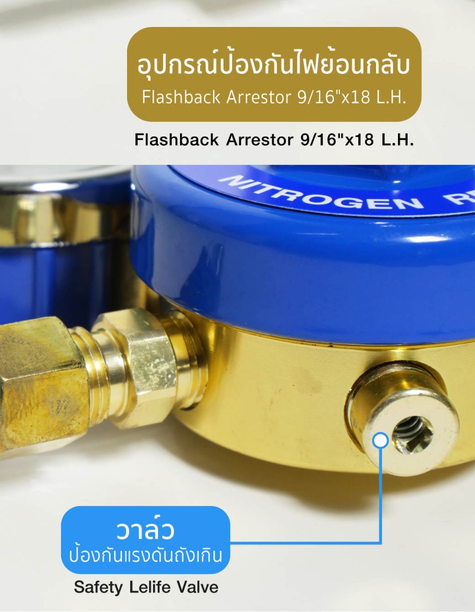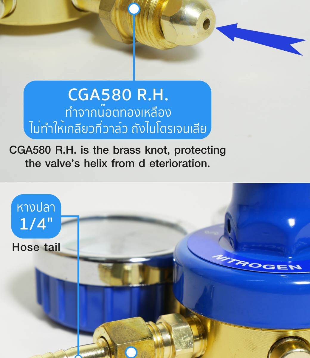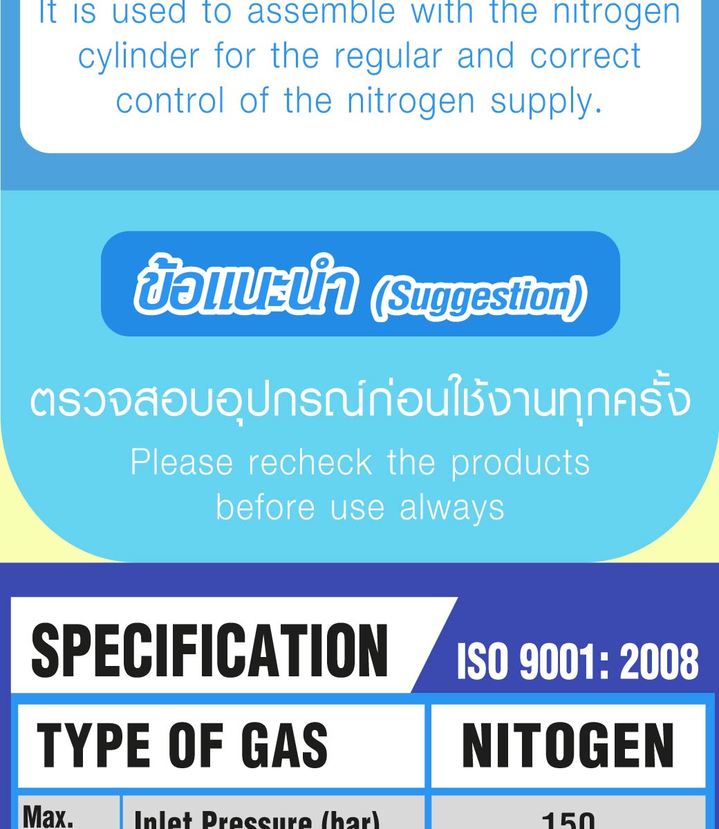 • ใช้ต่อกับท่อไนโตรเจน เพื่อควบคุมการจ่ายของไนโตรเจนให้สม่ำเสมอและเที่ยงตรง